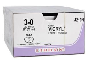 La suture Ethicon J416H est une suture chirurgicale polyglactine 910 absorbable de haute qualité. Il mesure 27 pouces. En longueur, de taille 3-0, elles sont non teintes et ont généralement un taux d’absorption de 56 à 70 jours. Cette suture est équipée d’une aiguille à point effilé SH et comporte 36 points dans une boîte.