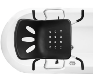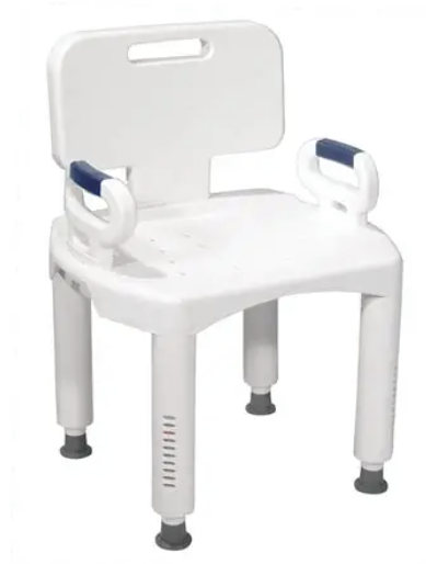 Chaise de douche solide et légère avec dossier et poignées amovibles pour faciliter la sortie ou l’entrée dans la douche.