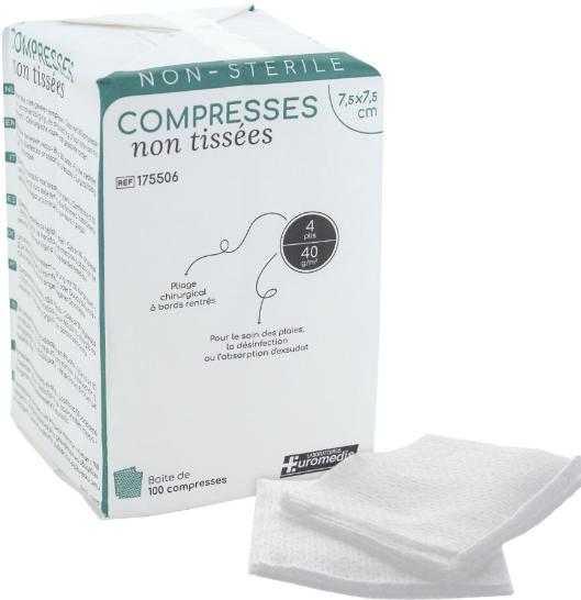La compresse 40 grammes à usage unique d’Euromedis est adaptée aux soins et au recouvrement des plaies. Très douce et résistante, elle respecte les peaux sensibles et est dotée dun excellent pouvoir d’absorption.