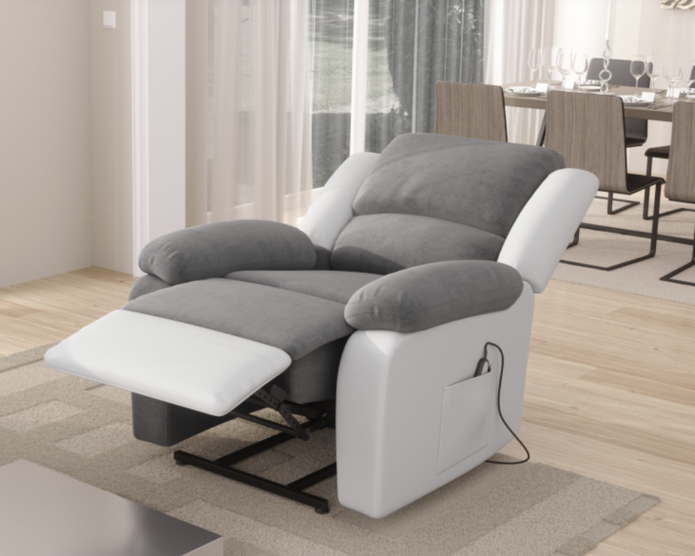 FAUTEUIL RELEVEUR LRE 92 PU BLANC/MF GRIS AVEC PORTE GOBELET