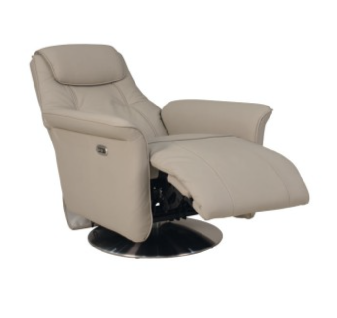 Le fauteuil peut pivoter à 330° lorsqu’il est en position assise ou relax, mais se bloque droit lorsqu’il commence à se relever. Fonction releveur avec déploiement progressif du repose-jambes, fonction relax à différentes inclinaisons. Réglage manuel du repose-tête.