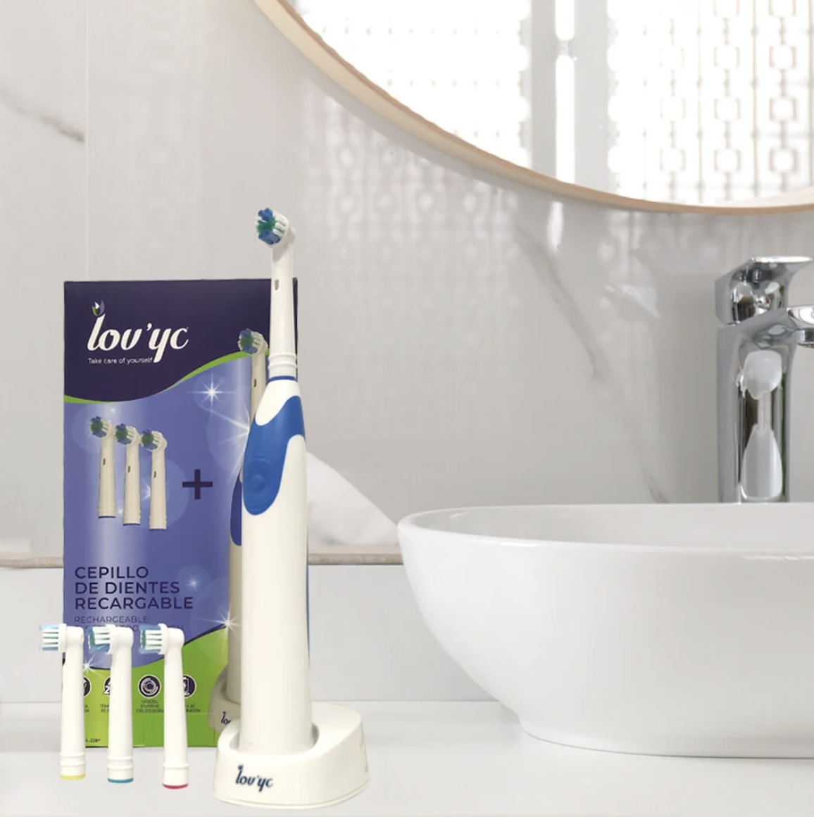 la nouvelle brosse électrique Lov’yc avec tête amovible, trois modes de vitesse différents, submersible et avec une autonomie allant jusqu’à 15 jours. Sa tête arrondie couvre toute la surface de la dent permettant de nettoyer avec précision toute la zone en s’adaptant en douceur. Découvrez avec Lov’yc la différence entre une brosse normale et une brosse électrique.