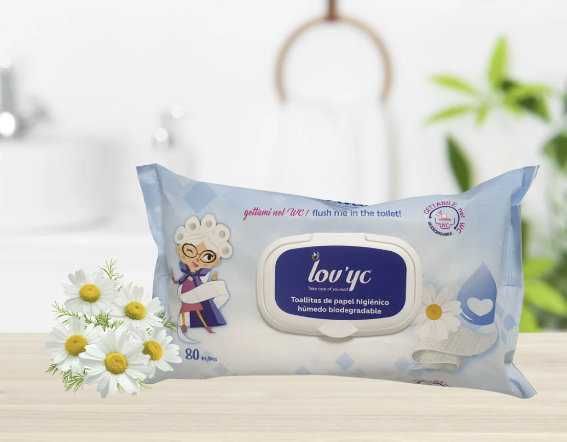 Les lingettes hygiéniques Lov’yc font attention à votre peau. Son tissu est doux et délicat avec une formule fraîche à l’extrait de camomille qui prend soin de votre peau. Ils sont également respectueux de l’environnement car leur tissu est biodégradable, compostable et lorsqu’il est jeté dans les toilettes, il se dissout avec de l’eau en un rien de temps.