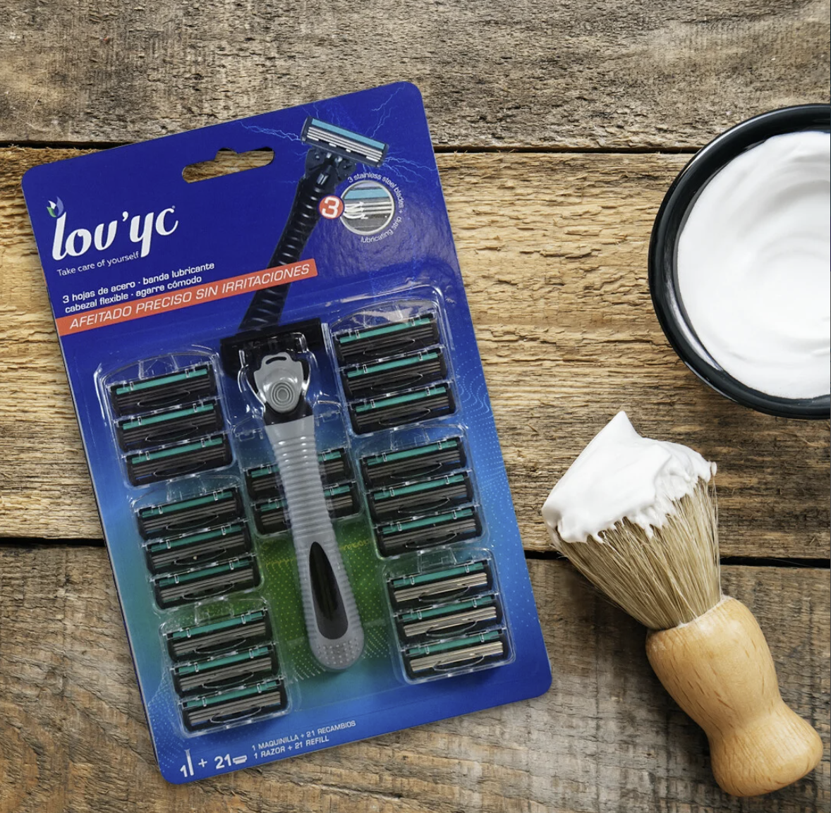 Nous présentons notre rasoir jetable Lov’yc pour homme, avec trois lames en acier et une bande lubrifiante pour un rasage plus doux et plus agréable. Il a une tête souple pour mieux s’adapter à la surface de la peau.