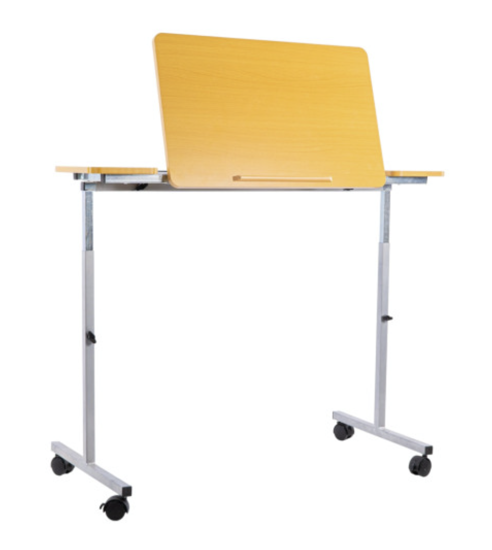 La table de lit inclinable et réglable s’adresse aux personnes alitées ou installées au fauteuil.