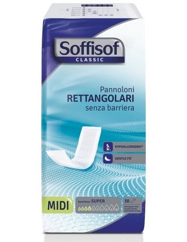 Soffisof Classic Rectangulaire est une aide absorbante sans barrière et une surface douce en tissu hypoallergénique.