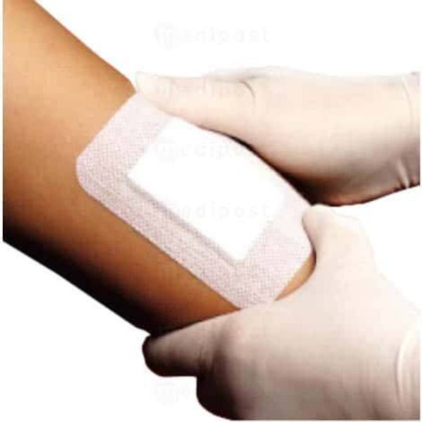 - Compresse centrée, absorbante, non adhérente à la plaie