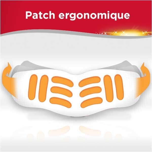 Son format ergonomique permet de s’adapter aux mouvements de la nuque, des épaules et du poignet. Les deux points de fixation adhésifs garantissent une tenue longue durée pour 8h de chaleur constante.